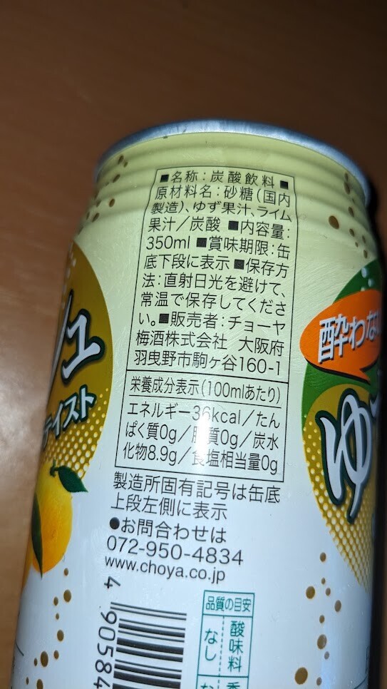 梅酒のノンアル飲料もあるのだが、梅飲料が苦手なので柚子をチョイス。
